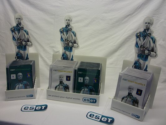 Display ESET DVD boxes in customised tabletop holders and add a shelf wobbler or two for added visibility.