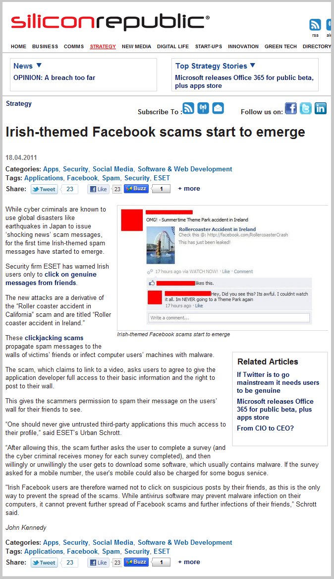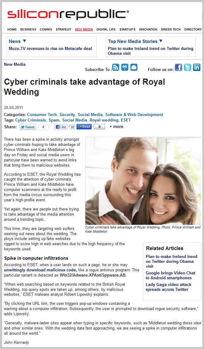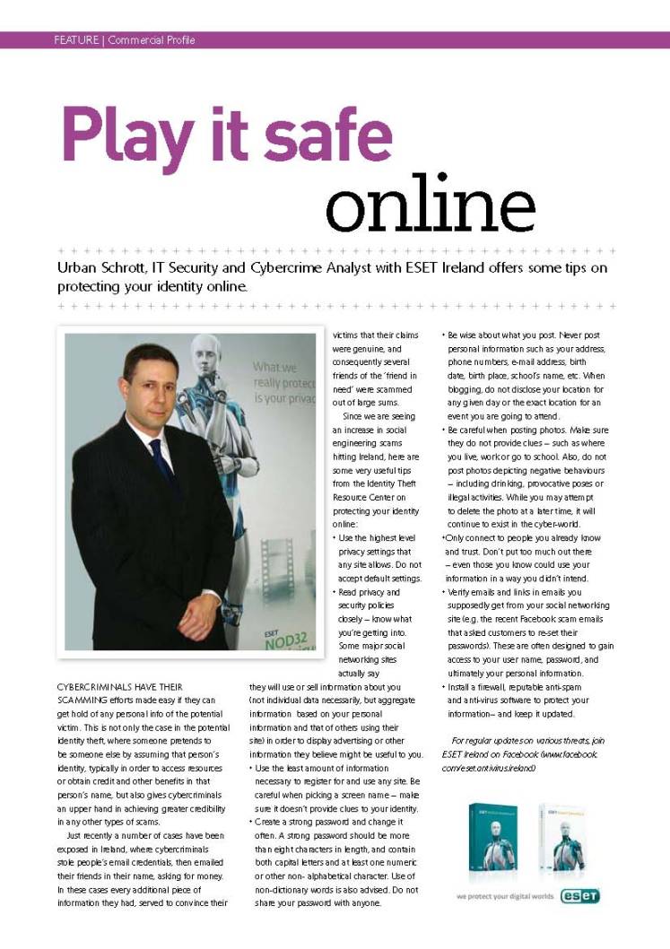 Press Clippings April 2011 Posted on April 29, 2011July 18, 2011 by ESET Ireland Click on thumbnails to view full articles. IrishDev 29.04.2011 SiliconRepublic 29.04.2011 BusinessIreland April 2011 InBusiness April 2011 SiliconRepublic 18.04.2011 Share this: Share on X (Opens in new window) X Share on Facebook (Opens in new window) Facebook Share on LinkedIn (Opens in new window) LinkedIn Share on Tumblr (Opens in new window) Tumblr Share on Reddit (Opens in new window) Reddit Email a link to a friend (Opens in new window) Email Like Loading... Related