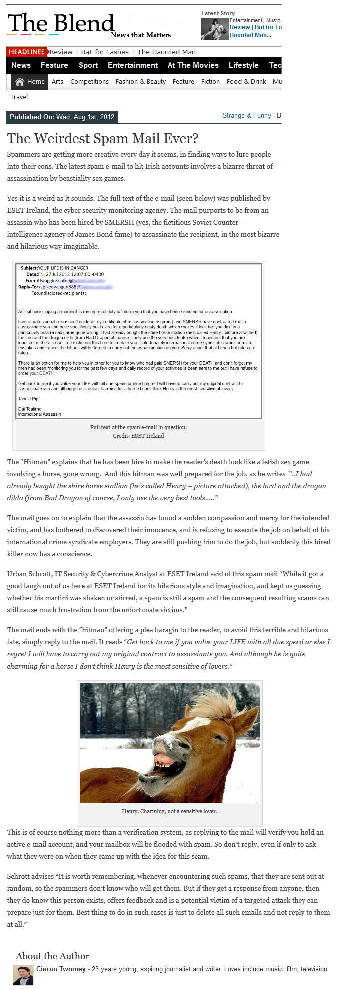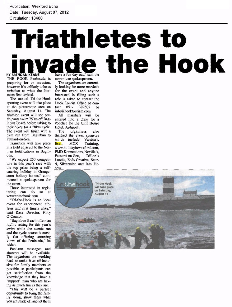 Press Clippings August 2012 Posted on August 9, 2012November 8, 2012 by ESET Ireland Click on thumbnails to view full articles. SiliconRepublic 30.08.2012 . Wexford Echo 07.08.2012 . Enniscorthy Guardian 07.08.2012Gorey Guardian 07.08.2012New Ross Standard 07.08.2012Wexford People 08.08.2012 . Wexford Echo, 07.08.2012Gorey Echo 07.08.2012Enniscorthy Echo 07.08.2012 . . Nothing To Do 01.08.2012 Share this: Click to share on X (Opens in new window) X Click to share on Facebook (Opens in new window) Facebook Click to share on LinkedIn (Opens in new window) LinkedIn Click to share on Tumblr (Opens in new window) Tumblr Click to share on Reddit (Opens in new window) Reddit Click to email a link to a friend (Opens in new window) Email Like Loading... Related