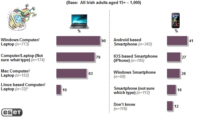 The research by ESET Ireland, was carried out on a thousand people. First we determined what sort of devices the Irish use to connect to the internet: