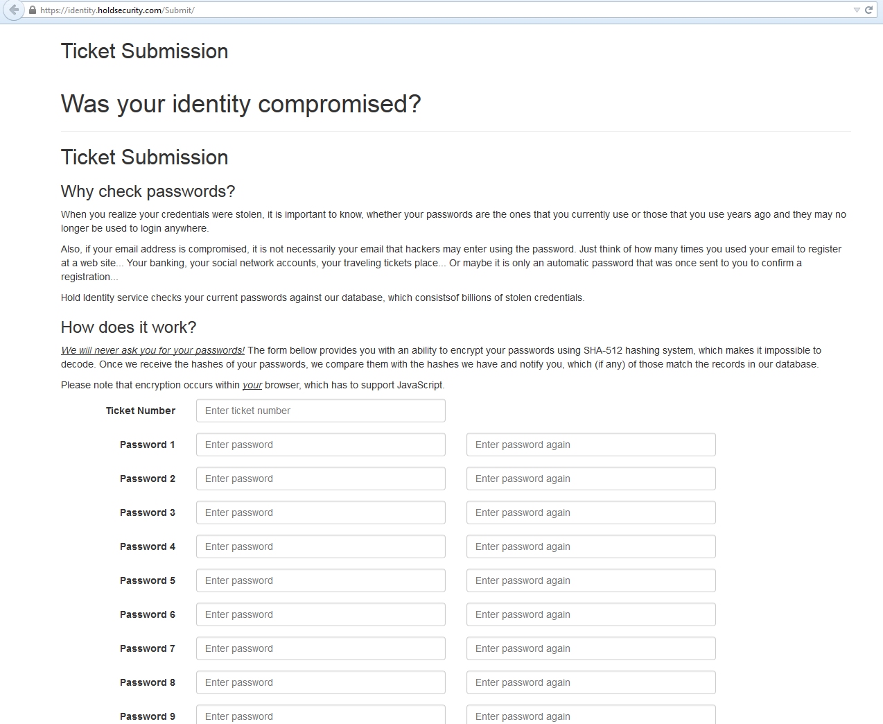 But what followed the shocking announcement left us even more baffled. Hold Security offered a service where they charge money for webmasters to find out if their websites were affected by the hack in a form, that is reminiscent of phishing websites, where they ask users to enter their passwords and email addresses for them to “check” if they’ve been hacked! Tony Bradley of Minimal Risk commented in his blog, that the disclosure of Russian password hack seems like fake antivirus scam.