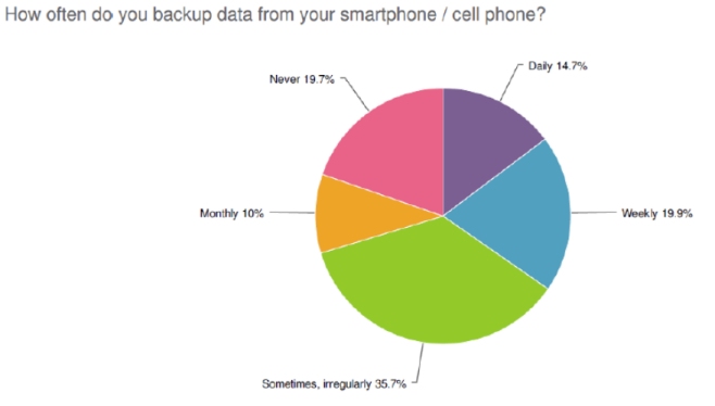 To protect against any loss of content it is recommended to regularly back up the data stored on a smartphone. Based on ESET’s survey 19.7% of users do not actually back up data at all and 35.7% only do so sometimes, 14.7% do so daily, 19.9% weekly and 10% monthly.