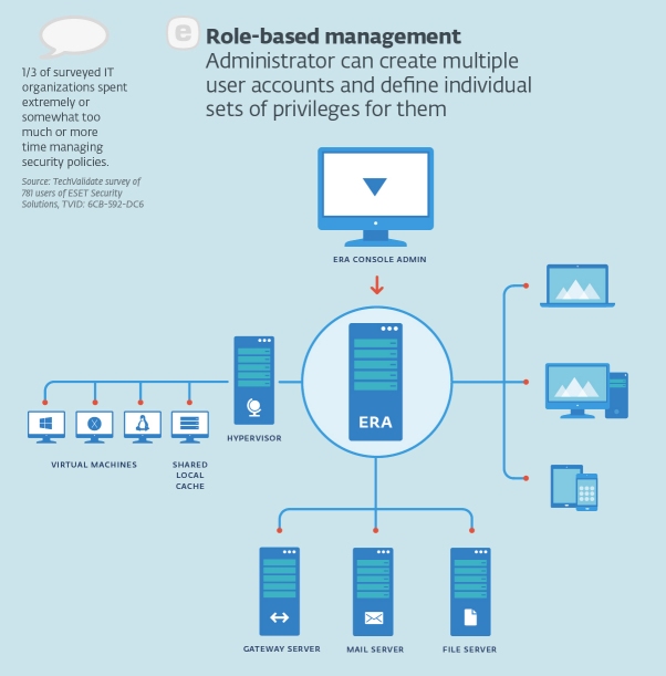 ESET Remote Administrator and ESET Endpoint Security for Android deliver essential mobile security and device management, without adding complexity or another management tool. By making daily security management tasks easy to automate, ESET Remote Administrator gives back valuable time to IT administrators, empowering them to focus on making their business more competitive.