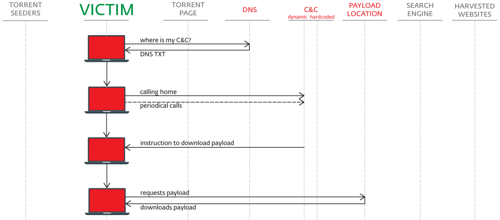 The bot has the libtorrent library integrated and one of the tasks is to become a seeder – a binary file is downloaded, torrent created and seeded.