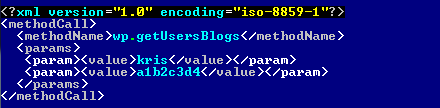 For the attack itself, the XML-RPC API of WordPress is used. Particularly the wp.getUsersBlogsAPI is abused. A typical request looks like: