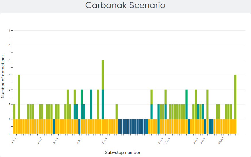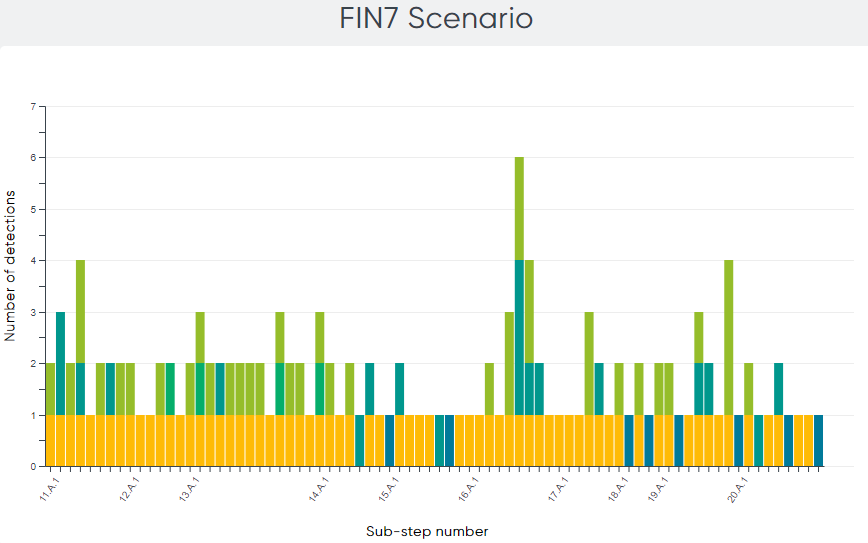 The detection scenarios consisted of 20 steps (10 for Carbanak and 10 for FIN7) spanning a spectrum of tactics listed in the ATT&CK framework, from initial access to lateral movement, collection, exfiltration, and so on. These steps are then broken down to a more granular level – a total of 162 sub-steps (or 174 for vendors also participating in the Linux part of the evaluation). The MITRE Engenuity team recorded the responses and level of visibility at each sub-step for each participating EDR solution.