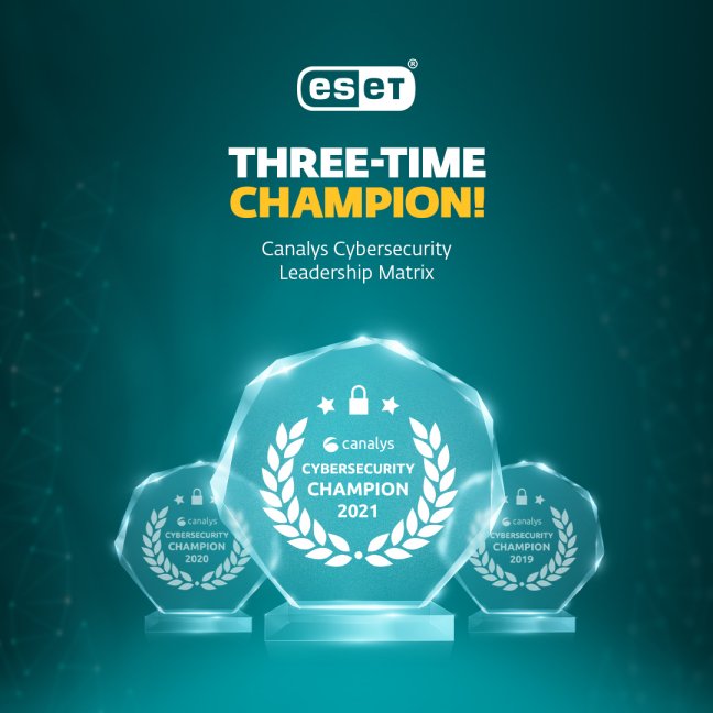 ESET, a global leader in cybersecurity, has achieved ‘Champion’ status for the third year in a row in the latest Global Cybersecurity Leadership Matrix from Canalys, improving upon its 2020 matrix position with a focus on investment in enterprise services and partner training.