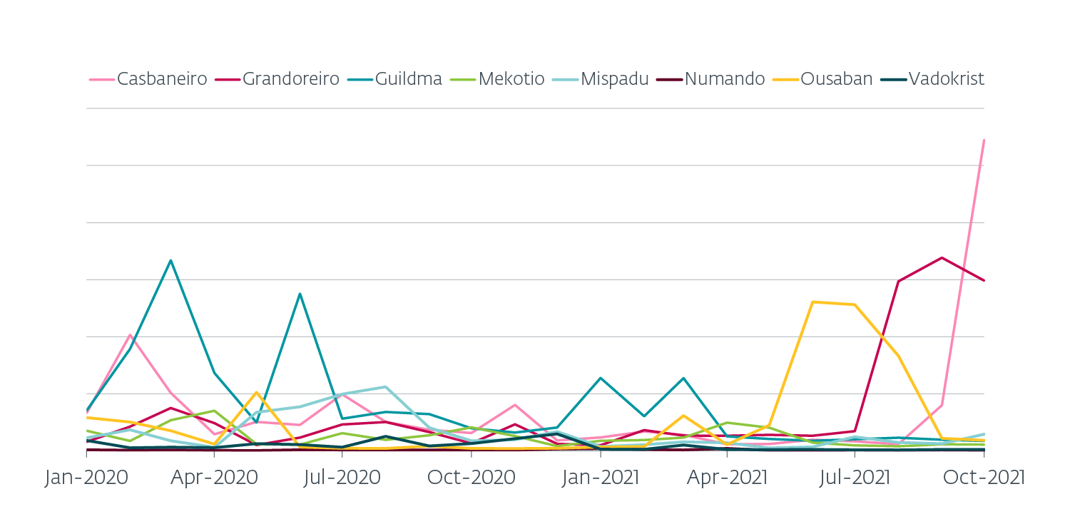 ESET telemetry shows a surprisingly large increase in the reach of Ousaban, Grandoreiro and Casbaneiro in recent months, leading to the conclusion that the threat actors behind these malware families are determined to continue their nefarious actions against users in targeted countries.