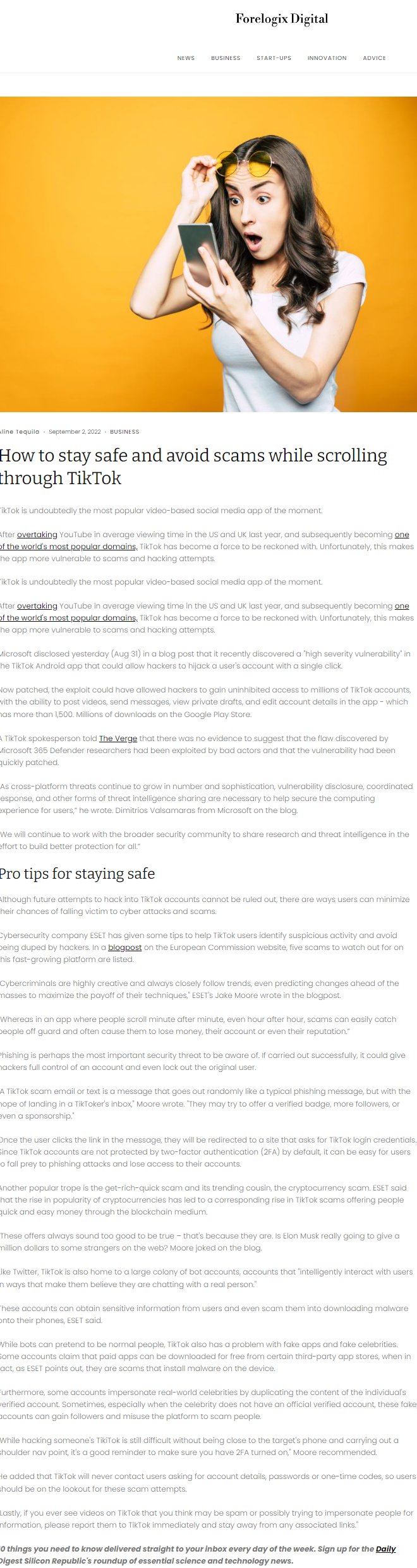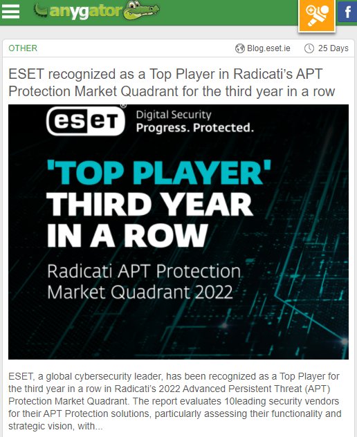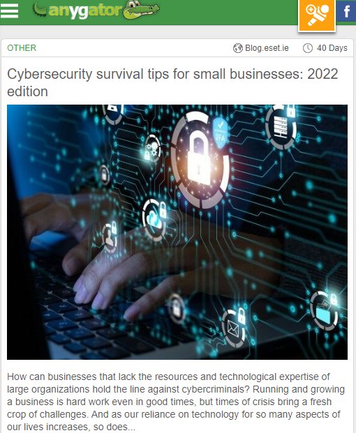 Press Clippings 2022 Posted on January 10, 2022January 3, 2023 by ESET Ireland Click to view full articles. Anygator 29.12.2022 Anygator 21.12.2022 Anygator 20.12.2022 Anygator 20.12.2022 Anygator 20.12.2022 Anygator 15.12.2022 Anygator 15.12.2022 Anygator 14.12.2022 Anygator 13.12.2022 Anygator 13.12.2022 Anygator 13.12.2022 The Irish Sun 09.12.2022 Anygator 07.12.2022 Anygator 06.12.2022 Anygator 01.12.2022 Anygator 01.12.2022 Anygator 29.11.2022 Anygator 25.11.2022 The Irish Sun 25.11.2022 The Irish Sun 24.11.2022 Anygator23.11.2022 Anygator22.11.2022 Anygator17.11.2022 Anygator14.11.2022 TechCentral.ie 11.11.2022 MSN Ireland 10.11.2022 Anygator 10.11.2022 Anygator 09.11.2022 Anygator 08.11.2022 Anygator 03.11.2022 Eolas 01.11.2022 Anygator 28.10.2022 Anygator 26.10.2022 Eolas 26.10.2022 Anygator 24.10.2022 Anygator 22.10.2022 The Irish Sun 21.10.2022 Anygator 18.10.2022 Anygator 18.10.2022 Anygator 18.10.2022 Anygator 18.10.2022 Anygator 18.10.2022 Malpedia 29.09.2022 Cryptorecovery 02.09.2022 Forelogix Digital 02.09.2022 Fromaradio 01.09.2022 365 01.09.2022 Siliconrepublic 01.09.2022 CPMG 20.08.2022 Irish Daily Mail 20.08.2022 MSN Ireland 19.08.2022 Extra.ie 19.08.2022 Eolas 06.08.2022 Eolas 05.08.2022 TheIrishSun 03.08.2022 TechCentral 22.07.2022 Buzz.ie 20.07.2022 Anygator 20.07.2022 Anygator 19.07.2022 Anygator 14.07.2022 Anygator 13.07.2022 Anygator 12.07.2022 Anygator 11.07.2022 Anygator 06.07.2022 Anygator 04.07.2022 Anygator 29.06.2022 Anygator 27.06.2022 Anygator 24.06.2022 Anygator 22.06.2022 Anygator 21.06.2022 Anygator 20.06.2022 Anygator 16.06.2022 Anygator 15.06.2022 Anygator 14.06.2022 Anygator 13.06.2022 Anygator 10.06.2022 Anygator 09.06.2022 Anygator 07.06.2022 Anygator 03.06.2022 Anygator 02.06.2022 Anygator 01.06.2022 MSN Ireland 30.05.2022 Anygator 30.05.2022 Anygator 27.05.2022 MSN Ireland 26.05.2022 Ireland Live 26.05.2022 Anygator 26.05.2022 Anygator 23.05.2022 Anygator 19.05.2022 Anygator 16.05.2022 Anygator 13.05.2022 MSN Ireland 13.05.2022 Irish Mirror 12.05.2022 Northern Ireland 12.05.2022 News Letter 12.05.2022 Derry Journal 12.05.2022 MSN Ireland 12.05.2022 BelfastLive 11.05.2022 Anygator 11.05.2022 Anygator 05.05.2022 Anygator 04.05.2022 Anygator 03.05.2022 Eolas 03.05.2022 Eolas 02.05.2022 Anygator 29.04.2022 BusinessPlus 28.04.2022 Anygator 28.04.2022 United Networking 28.04.2022 F1TYM1 28.04.2022 Anygator 27.04.2022 Anygator 25.04.2022 Anygator 21.04.2022 TechCentral.ie 20.04.2022 Anygator 20.04.2022 Anygator 19.04.2022 Anygator 14.04.2022 SiliconRepublic 13.04.2022 The Irish Times 13.04.2022 MSN Ireland 12.04.2022 The Irish Sun 12.04.2022 Anygator 12.04.2022 Anygator 11.04.2022 The Herald 08.04.2022 Anygator 08.04.2022 Anygator 07.04.2022 Anygator 05.04.2022 Anygator 04.04.2022 Anygator 01.04.2022 Anygator 31.03.2022 Anygator 30.03.2022 Anygator 29.03.2022 Anygator 28.03.2022 Anygator 24.03.2022 Anygator 22.03.2022 Anygator 21.03.2022 Anygator 16.03.2022 Anygator 15.03.2022 Anygator 14.03.2022 The Irish Sun 11.03.2022 Anygator 09.03.2022 Anygator 08.03.2022 MSN Ireland 07.03.2022 The Irish Sun 07.03.2022 The Daily Swig 07.03.2022 Anygator 07.03.2022 Anygator 04.03.2022 Anygator 03.03.2022 MSN Ireland 02.03.2022 Eolas 02.03.2022 Anygator 02.03.2022 Prevos.ie 01.03.2022 Anygator 01.03.2022 Anygator 28.02.2022 BreakingNews.ie 26.02.2022 Swords Today 25.02.2022 Techcentral.ie 25.02.2022 Anygator 25.02.2022 Anygator 24.02.2022 MSN Ireland 24.02.2022 SiliconRepublic 24.02.2022 Irish Independent 24.02.2022 The Irish Sun 23.02.2022 Anygator 23.02.2022 Anygator 22.02.2022 Anygator 21.02.2022 Anygator 18.02.2022 Anygator 17.02.2022 Anygator 16.02.2022 Anygator 15.02.2022 Anygator 14.02.2022 Anygator 11.02.2022 Flipboard 09.02.2022 Irish Examiner 08.02.2022 Anygator 08.02.2022 Anygator 07.02.2022 Anygator 07.02.2022 The Irish Sun 08.02.2022 MSN Ireland 06.02.2022 Anygator 04.02.2022 Anygator 03.02.2022 The Irish Sun 03.02.2022 Anygator 31.01.2022 Anygator 27.01.2022 Anygator 26.01.2022 The Irish Sun 25.01.2022 Anygator 25.01.2022 Anygator 24.01.2022 Anygator 21.01.2022 Anygator 20.01.2022 Anygator 19.01.2022 Anygator 18.01.2022 Anygator 17.01.2022 Anygator 14.01.2022 The Irish Sun 13.01.2022 The Irish Sun 12.01.2022 Anygator 12.01.2022 Anygator 11.01.2022 Anygator 10.01.2022 Anygator 10.01.2022 Anygator 07.01.2022 Anygator 06.01.2022 Anygator 05.01.2022 Anygator 04.01.2022 Anygator 04.01.2022 Anygator 04.01.2022 Eolasmagazine.ie 02.01.2022 Eolas 02.01.2022 Share this: Click to share on X (Opens in new window) X Click to share on Facebook (Opens in new window) Facebook Click to share on LinkedIn (Opens in new window) LinkedIn Click to share on Tumblr (Opens in new window) Tumblr Click to share on Reddit (Opens in new window) Reddit Click to email a link to a friend (Opens in new window) Email Like Loading... Related