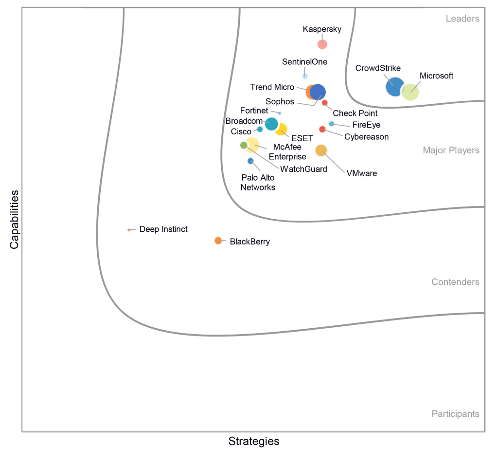 SOURCE: IDC MarketScape: Worldwide Modern Endpoint Security for Enterprises 2021 Vendor Assessment, by Michael Suby, November 2021, IDC #US45922220e.