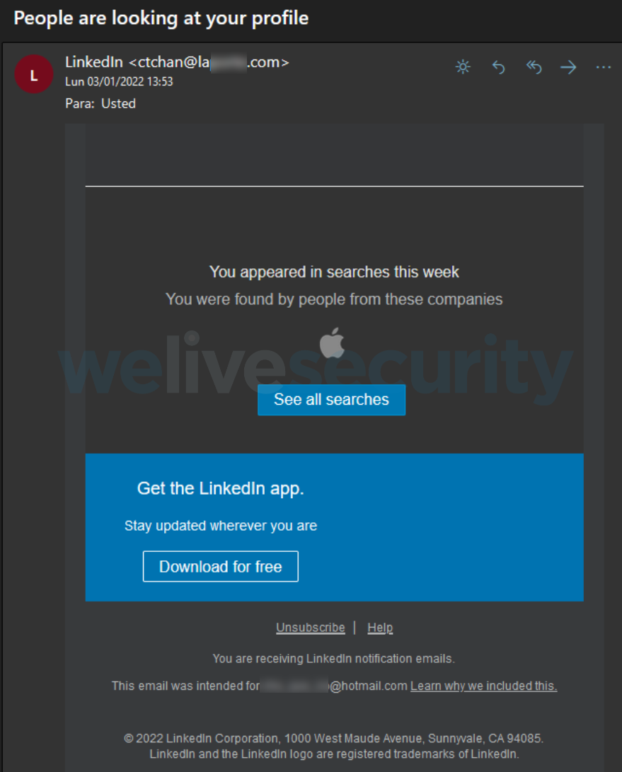 Unfortunately, the reality is not that favorable, much less so in times of the Great Resignation. Online fraud impersonating LinkedIn continues to thrive and indeed, has soared in recent months. While some scammers can be very successful with very simple and old tricks, such as asking for your banking details or upfront payments in return for a seemingly legitimate job interview, others can be very sophisticated.