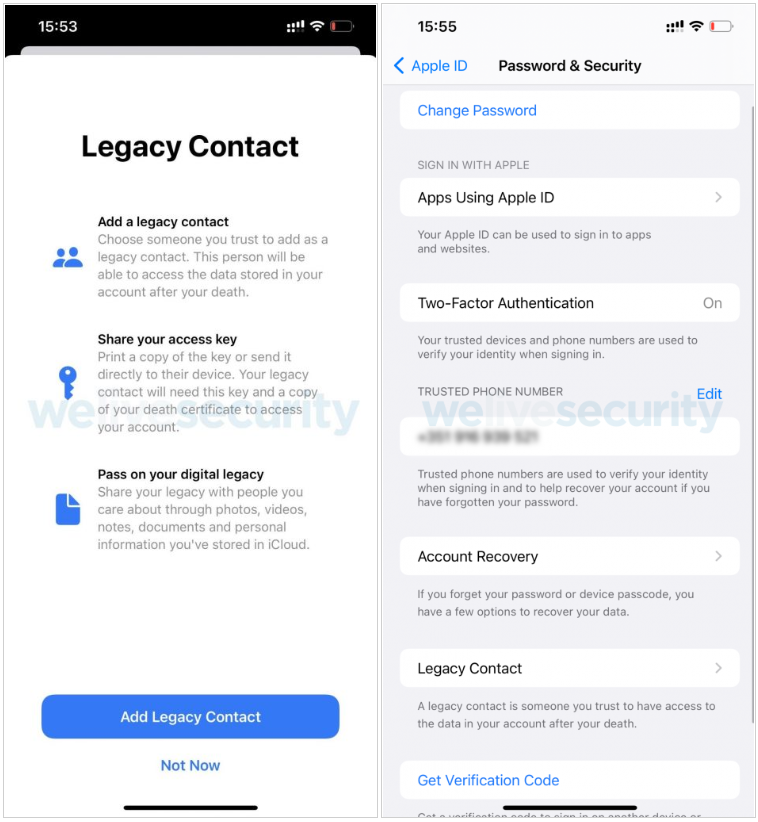 If you fit the requirements, you can do this process on your device by tapping on the Apple ID icon in the Settings menu, selecting “Password & Security” and, finally, selecting Legacy Contact. This will generate an access key in a QR code format that you can send via Messages or print and hand to the person you chose. When the day comes, they will be able to request access on the web or directly on a iOS or macOS device. Apple will also request a death certificate before granting access to the account.