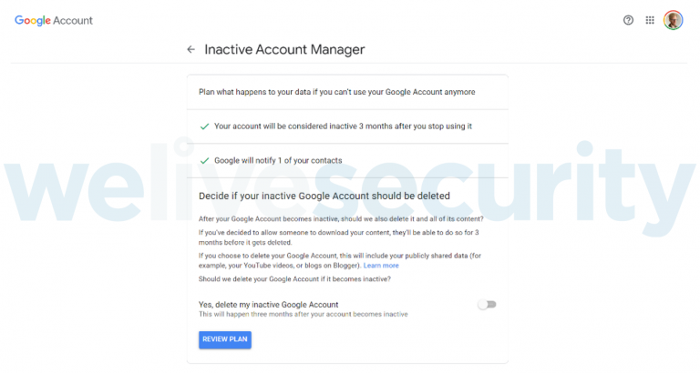 Finally, you will also be able to decide whether your account should be deleted three months after it has been shared with your legacy contact. This, however, implies that all your content will be deleted, including YouTube videos or blog posts, a reason not everyone might want to enable this option.