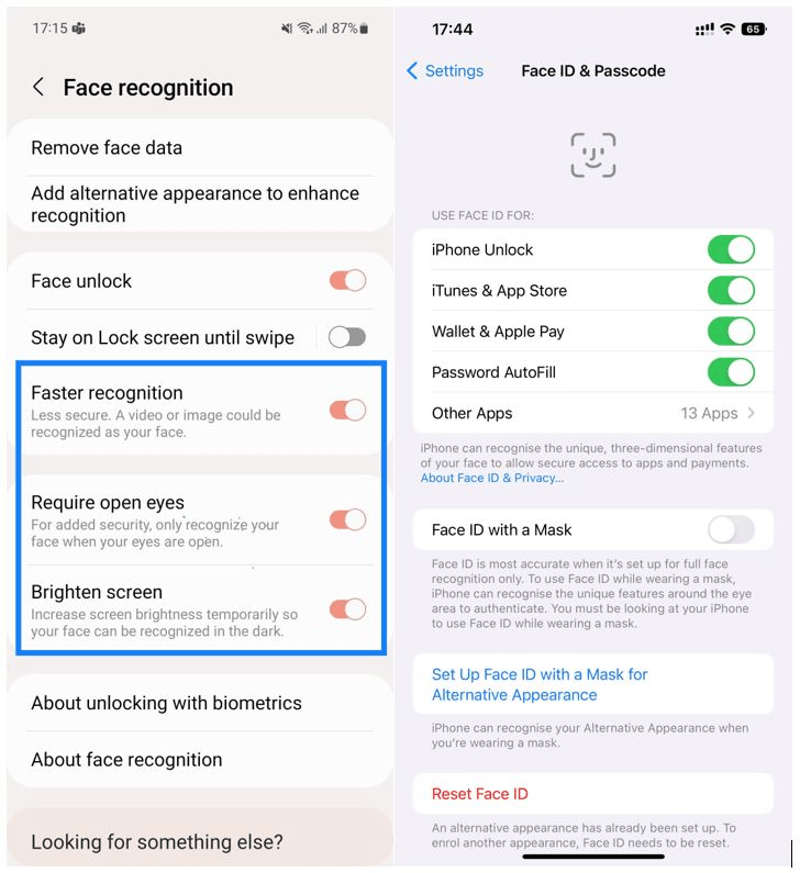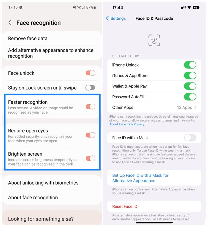 The simplest systems, usually found in cheaper phones, might only compare your face to a previously stored face image, other systems use metrics such as the distance between your eyes, the measure from your forehead to your chin, or the shape of the contours of your lips, however, not always seamlessly.