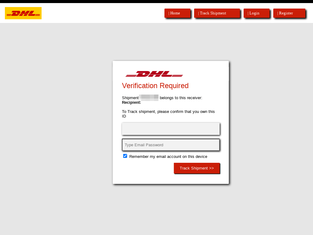 - a request for email verification (password) in order to track a (non-existent) parcel: