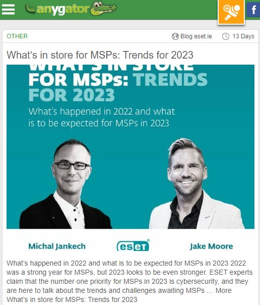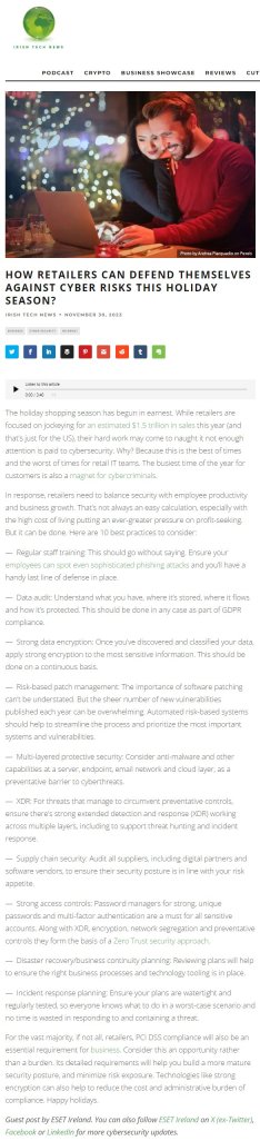 Press Clippings 2023 Posted on January 3, 2023January 5, 2024 by ESET Ireland Click to view full articles. Funnier9 31.12.2023 LoveVouchers 15.12.2023 The Irish Sun 06.12.2023 Siliconrepublic 06.12.2023 Software Advice 03.12.2023 Irish Tech News 30.11.2023 TechBuzzIreland. 29.11.2023 TechBuzzIreland 25.11.2023 ReclaimTheFacts 20.11.2023 Techmins 18.11.2023 Radius 13.11.2023 Eolas 02.11.2023 Eolas 02.11.2023 Technocio 02.11.2023 GlobalMediaIT 01.11.2023 RadioGeek 01.11.2023 Infosertec 01.11.2023 Intenz 01.11.2023 CEC 01.11.2023 Arepa 30.10.2023 Carabobo 30.10.2023 Bizi News 27.10.2023 Revista 26.10.2023 Siliconrepublic 26.10.2023 DiasporaAlliancenc 26.10.2023 Radius 25.10.2023 BVD 20.10.2023 DiasporaAlliancenc 20.10.2023 OfficeSentinel 20.10.2023 CyberSecured24x7 20.10.2023 SuperPCparts 20.10.2023 TechDrivenFuture 20.10.2023 CarDealMe 20.10.2023 TechTrendz 20.10.2023 Meyild02 20.10.2023 CyberSecurity 20.10.2023 LigaTechNews 20.10.2023 CyberSecurityReviews 20.10.2023 ByteWave 20.10.2023 Artificial 20.10.2023 ComanOsia 20.10.2023 Techy Stuff 20.10.2023 Let’sAskBinu 20.10.2023 Ugetuntopc 19.10.2023 The Irish Sun 11.10.2023 The Irish Sun 20.09.2023 Dublin News 19.09.2023 The Irish Sun 19.09.2023 Irish Tech News 18.09.2023 MSN Ireland 12.09.2023 Accioneficaz 05.09.2023 Joe.ie 01.09.2023 Eolas 01.09.2023 The Irish Sun 31.08.2023 MSN Ireland 28.08.2023 The Irish News 27.08.2023 Belfast Telegraph 27.08.2023 Ireland Live 27.08.2023 The Impartial Reporter 27.08.2023 MSN Ireland 27.08.2023 Radius 24.08.2023 The Irish Sun 17.08.2023 The Irish Sun13.08.2023 MSN Ireland 11.08.2023 Radius 11.08.2023 Irish Tech News 10.08.2023 RTE 09.08.2023 MSN Ireland 09.08.2023 IrelandLive 09.08.2023 InDerry 09.08.2023 MSN Ireland 09.08.2023 The Irish News 09.08.2023 The Impartial Reporter 09.08.2023 Belfast Telegraph 09.08.2023 Radius 04.08.2023 West Cork People 01.08.2023 The Irish Sun 01.08.2023 Tech Nice 27.07.2023 MSN Ireland 24.07.2023 Irish Mirror 22.07.2023 ZMA 21.07.2023 Radius 21.07.2023 Radius 20.07.2023 TechCentral 12.07.2023 The Irish Sun 10.07.2023 Irish Tech News 08.07.2023 The Irish Sun 06.07.2023 Dublin People 06.07.2023 West Cork People 01.07.2023 Geektime 30.06.2023 The Irish Sun 26.06.2023 Techtelegraph 22.06.2023 Ultimatepocket 22.06.2023 The Quintessential Journal 22.06.2023 I Dream 22.06.2023 Echo Live.ie 21.06.2023 The Cork Echo 21.06.2023 Irish Sun 16.06.2023 Mpnre 13.06.2023 The Irish Sun 12.06.2023 The Irish Sun 11.06.2023 42 10.06.2023 Irish Tech News 09.06.2023 DublinLive 07.06.2023 Irish Daily Mirror 07.06.2023 Irish Daily Mirror 07.06.2023 Irish Independent 07.06.2023 MSN Ireland 07.06.2023 MSN Ireland 07.06.2023 MSN Ireland 07.06.2023 Wexford GAA 26.05.2023 Tech News Space 25.05.2023 MSN Ireland 25.05.2023 NewsBeezer Ireland 24.05.2023 The Irish Sun 23.05.2023 The Irish Sun 23.05.2023 BBC 22.05.2023 Assortment 22.05.2023 Detective’s Seeker 21.05.2023 Sumando Negocios 17.05.2023 Community 17.05.2023 Technocio 17.05.2023 SociaLite 17.05.2023 La Mesa Redonda 16.05.2023 CAWTV 16.05.2023 IrelandLive 03.05.2023 MarketBiza 02.05.2023 Eolas 02.05.2023 Cybersecurity Institute 05.04.2023 Wexford GAA 19.04.2023 Anygator 19.04.2023 Anygator 18.04.2023 Anygator 17.04.2023 KnowBe4 16.04.2023 Anygator 14.04.2023 Anygator 13.04.2023 Anygator 12.04.2023 Anygator 12.04.2023 Anygator 11.04.2023 Anygator 11.04.2023 Anygator 06.04.2023 Anygator 06.04.2023 Anygator 05.04.2023 Anygator 04.04.2023 Anygator 04.04.2023 Anygator 31.03.2023 Anygator 30.03.2023 Anygator 29.03.2023 Anygator 27.03.2023 Anygator 24.03.2023 Anygator 23.03.2023 Anygator 22.03.2023 Anygator 21.03.2023 Anygator 16.03.2023 Anygator 15.03.2023 Anygator 14.03.2023 The Irish Sun 11.03.2023 Anygator 10.03.2023 Anygator 10.03.2023 Anygator 09.03.2023 Anygator 08.03.2023 Anygator 07.03.2023 Anygator 07.03.2023 Anygator 06.03.2023 Anygator 03.03.2023 Anygator 02.03.2023 TechCentral.ie 01.03.2023 Anygator 01.03.2023 Anygator 28.02.2023 Computertaal 28.02.2023 Anygator 24.02.2023 Anygator 23.02.2023 Anygator 23.02.2023 Anygator 22.02.2023 Anygator 21.02.2023 YodaSec Expose 21.02.2023 Anygator 20.02.2023 Anygator 19.02.2023 Anygator 17.02.2023 Anygator 16.02.2023 CyberSecured 16.02.2023 Cyber Security 16.02.2023 Cybersecureness 16.02.2023 Online Pitstop 16.02.2023 Office Sentinel 16.02.2023 Tech News Reviews 16.02.2023 Last Tech News 16.02.2023 Cyber Security Reviews 16.02.2023 TechNewsExplore 16.02.2023 The Cyber Social Hub 16.02.2023 Di-Markets 15.02.2023 Beker 15.02.2023 Let’s ask Binu 15.02.2023 The Cyberweb 15.02.2023 Anygator 15.02.2023 Anygator 14.02.2023 Anygator 13.02.2023 Anygator 10.02.2023 Anygator 09.02.2023 Anygator 08.02.2023 Anygator 07.02.2023 Anygator 01.02.2023 Anygator 31.01.2023 Anygator 30.01.2023 Anygator 26.01.2023 Anygator 25.01.2023 Anygator 24.01.2023 Anygator 23.01.2023 Anygator 20.01.2023 Anygator 18.01.2023 Anygator 17.01.2023 Anygator 16.01.2023 Calculus of Decay 15.01.2023 Anygator 12.01.2023 The Irish Sun 12.01.2023 The Irish Sun 11.01.2023 Anygator 11.01.2023 Anygator 11.01.2023 Anygator 10.01.2023 Anygator 09.01.2023 Anygator 06.01.2023 Anygator 05.01.2023 Anygator 04.01.2023 Anygator 03.01.2023 Eolas 02.01.2023 Eolas 02.01.2023 Share this: Click to share on X (Opens in new window) X Click to share on Facebook (Opens in new window) Facebook Click to share on LinkedIn (Opens in new window) LinkedIn Click to share on Tumblr (Opens in new window) Tumblr Click to share on Reddit (Opens in new window) Reddit Click to email a link to a friend (Opens in new window) Email Like Loading... Related