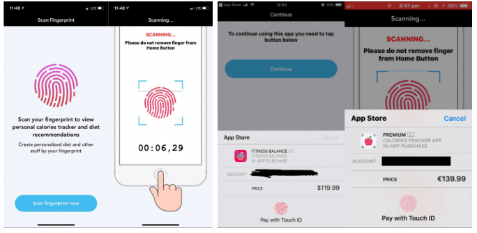 As an example, ESET researchers spotted multiple apps that posed as fitness-tracking tools and abused Apple’s Touch ID feature to steal money from iOS users. After a user launched one of the apps for the first time, it requested a fingerprint scan to “view their personalised calorie tracker and diet recommendations”. If the user had a credit or debit card directly connected to an Apple account, the malware would go on to steal money from the victims via fraudulent in-app payments.