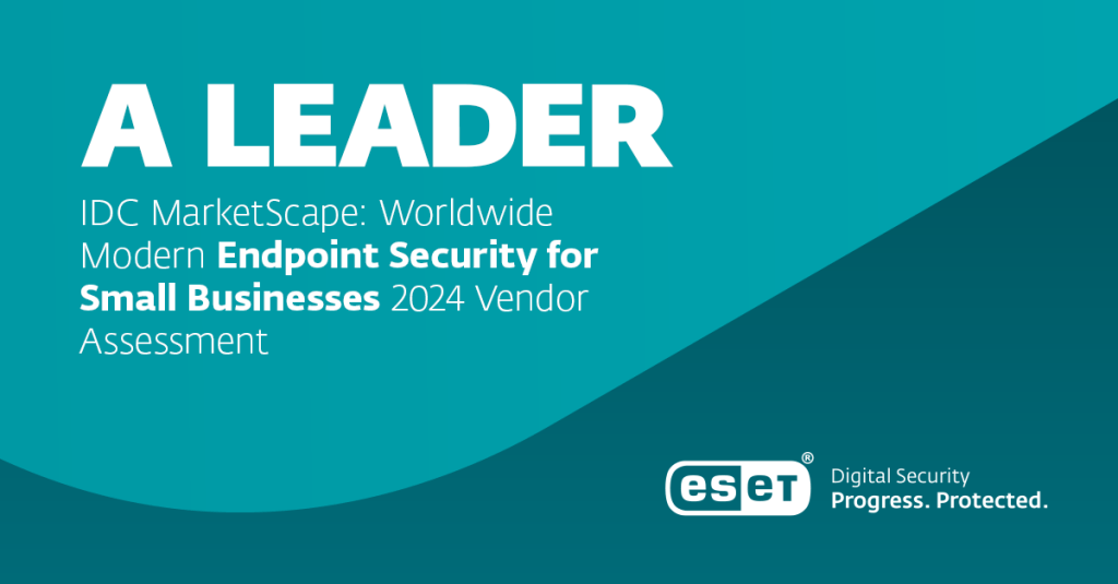 ESET, a global leader in digital security, achieved a great success when named a Leader in IDC MarketScape: Worldwide Modern Endpoint Security for Small Businesses 2024 Vendor Assessment