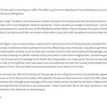 ESET Ireland encounters an interesting phishing scammer on DoneDeal. A couple of years ago, ESET Ireland has already covered some of this scamming in Scammers looking for victims on DoneDeal.ie. This time around one of our own employees had a similar experience when selling his car online. Contacted through the website by someone calling himself … More Blair is a DoneDeal scammer