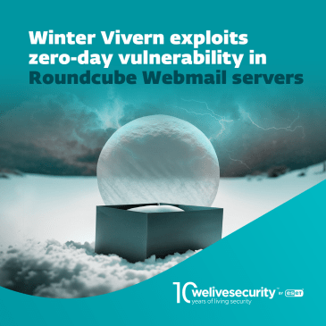 ESET Research recommends updating Roundcube Webmail to the latest available version as soon as possible. ESET Research has been closely tracking the cyberespionage operations of Winter Vivern for more than a year and, during our routine monitoring, we found that the group began exploiting a zero-day XSS vulnerability in the Roundcube Webmail server on October 11th, 2023. … More Winter Vivern exploits zero-day vulnerability in RoundcubeWebmail servers